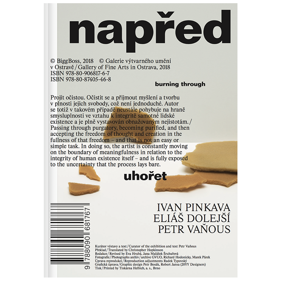 Knihu Napřed uhořet vydáva nakladatelství BiggBoss a Galerie výtvarného umění v Ostravě u příležitosti výstavy: Ivan Pinkava / Eliáš Dolejší – Napřed uhořet.