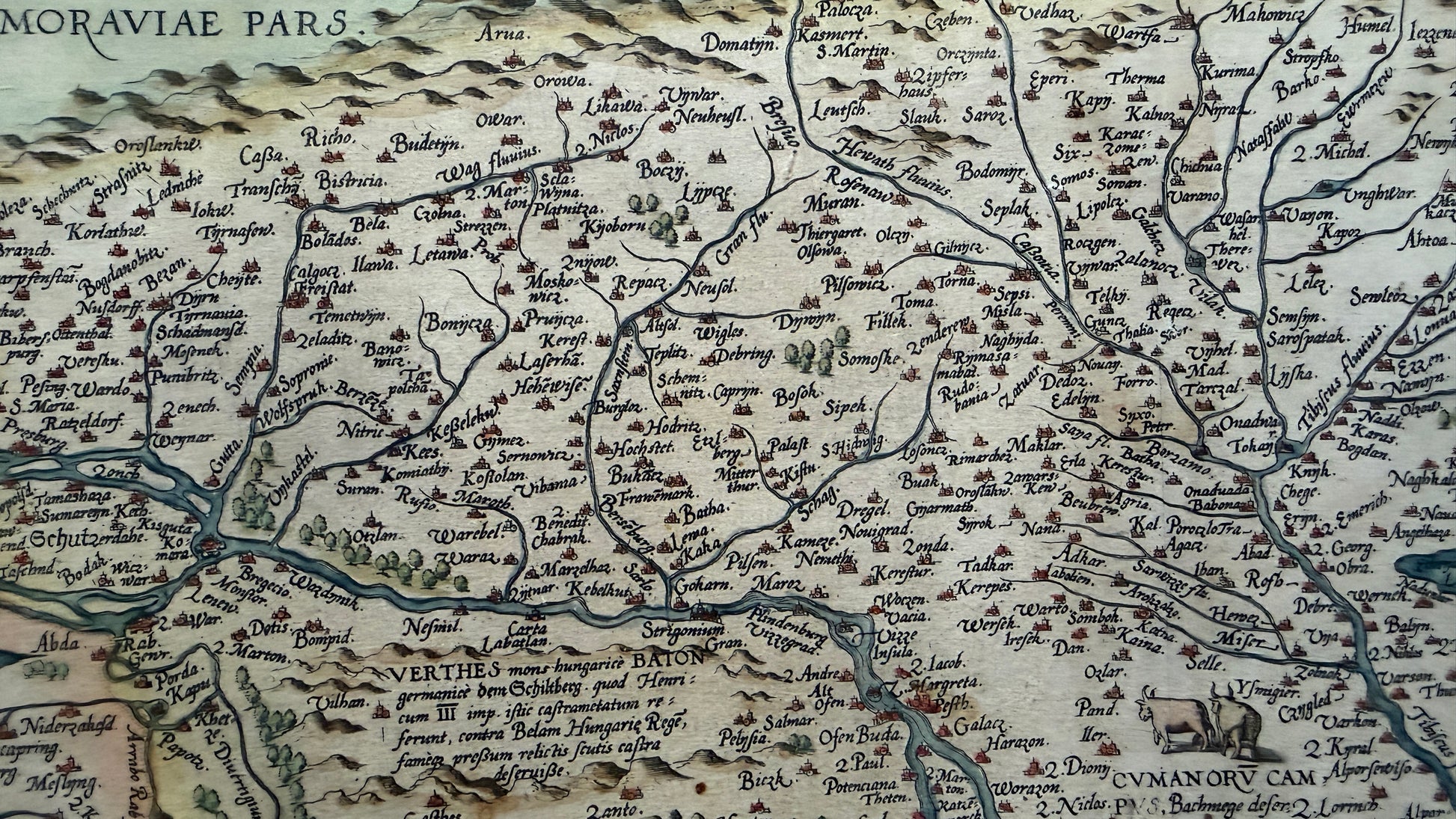 "Vértes, a Hungarian hill, called Schikberg in German, which Emperor Henry III had fortified against the Hungarian king Béla; however, the soldiers allegedly abandoned the camp due to hunger and left their shields behind." Wolfgang Lazius, the author of this map, was not just a cartographer. He was a humanist. And he knew what he was doing. He put stories into his maps. Memories. Symbols. Such texts are not decoration. They are a statement. They remind us that the country has a history and that the Kingdom of Hungary has its own experience of resistance. The hidden reference to Vértes is not accidental. At a time when Ottoman troops – "pagan hordes" – in armies numbering tens of thousands and often more than a hundred thousand men repeatedly attacked the southern borders of the kingdom, these borders gradually shifted to the territory of present-day Slovakia. It was here that the defensive line of Upper Hungary was created. The kingdom's defenses were concentrated on the Vienna-Bratislava-Komárno-Nové Zámky-Fiľakovo-Levice-Košice line. This is where the border was held. This is where survival was decided.