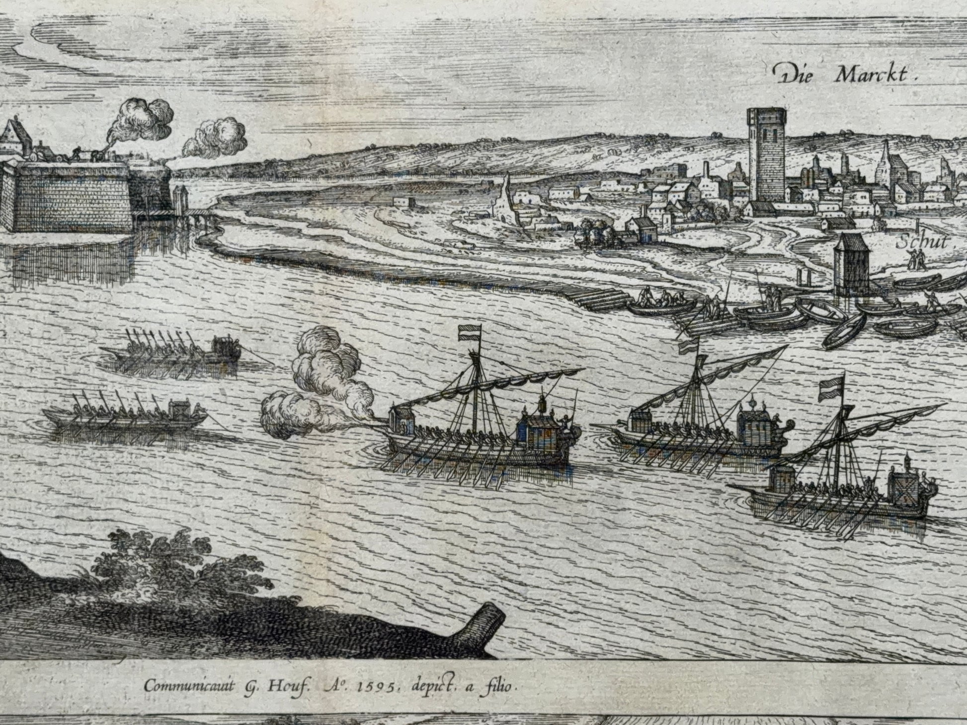 In the middle of the sheet is a Latin inscription referring to the author: Communicavit G. Houf. Ao 1595, depict. a filio.